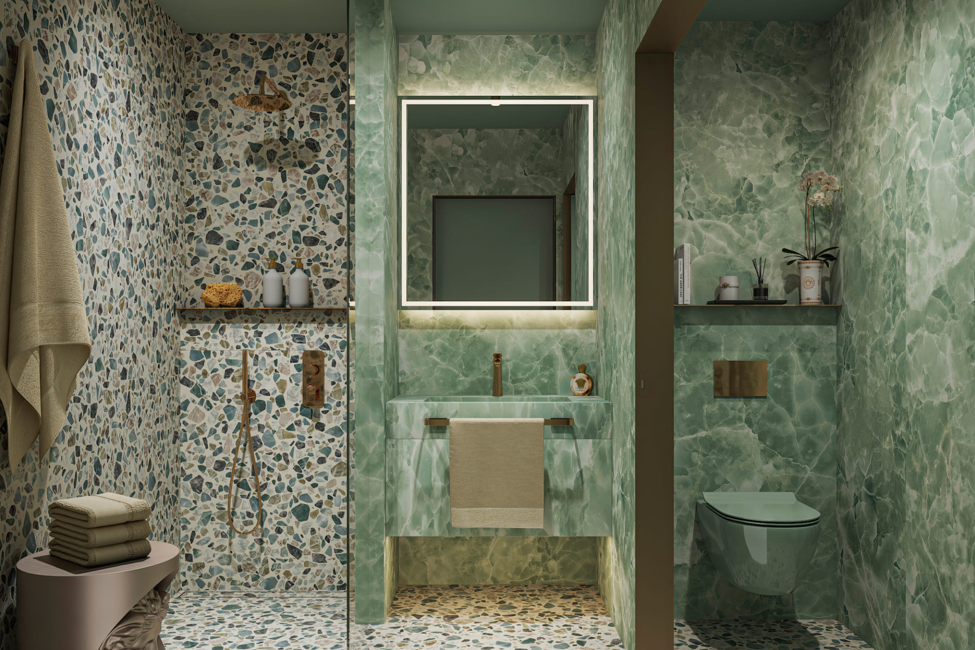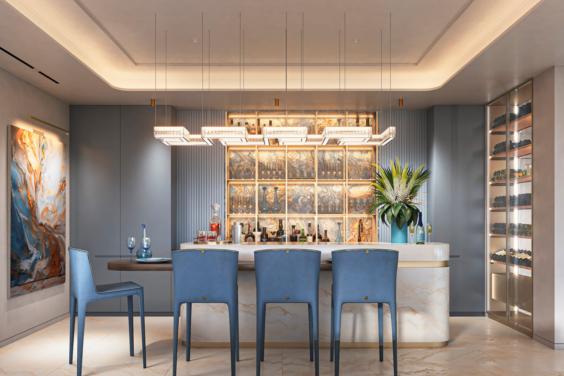 Las villas presentan una arquitectura de líneas elegantes y proporciones armónicas, con fachadas que combinan piedra natural, cristal y detalles artesanales. Amplios jardines privados enmarcan cada residencia, integrando zonas de descanso, comedores al aire libre y piscinas desbordantes que invitan al relax. El diseño exterior está pensado para ofrecer privacidad sin renunciar a la conexión con la naturaleza y las vistas panorámicas. Interiores El interior de cada villa refleja un cuidado equilibrio entre sofisticación y confort. Los amplios espacios abiertos, bañados por luz natural gracias a ventanales de suelo a techo, se combinan con materiales de primera calidad como mármol, maderas nobles y acabados artesanales. La distribución incluye salones de generosas dimensiones, cocinas de diseño totalmente equipadas, suites principales con vestidor y baños en suite, así como estancias versátiles que pueden adaptarse a las necesidades de cada familia.