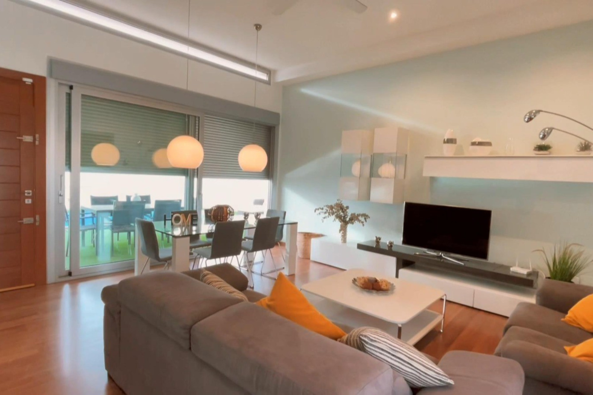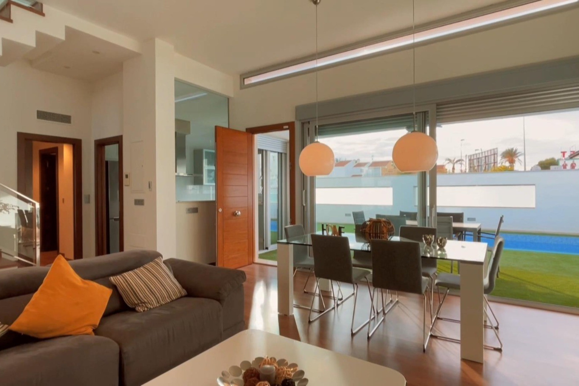 On the ground floor, you will find a beautiful independent kitchen equipped with the latest amenities and a spectacular living room that seamlessly connects to a terrace with access to a magnificent pool.
