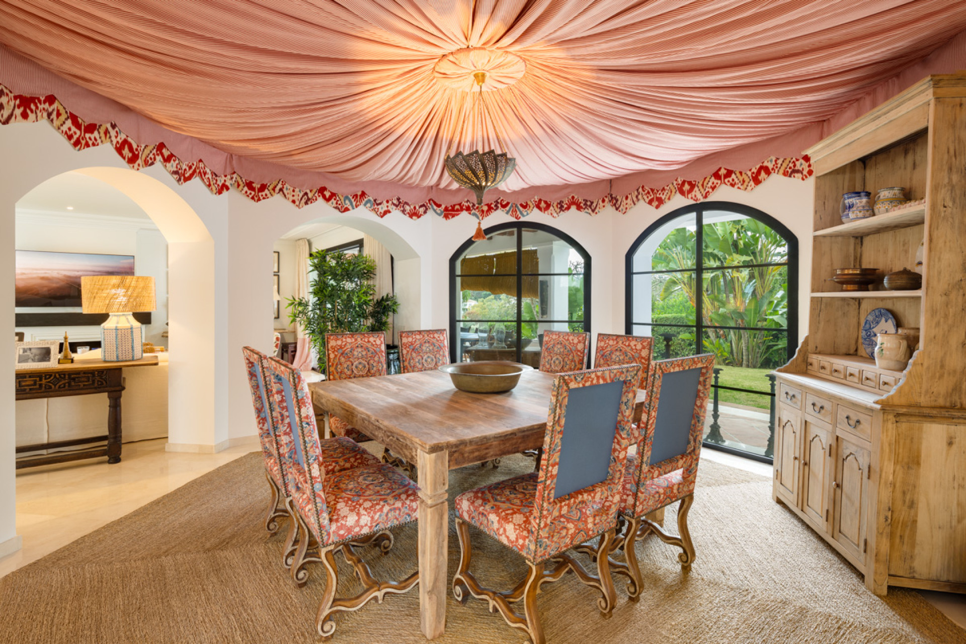 Внешний вид дома приглашает вас насладиться мягким климатом, характерным для этой местности. Террасы простираются по всей длине дома и представляют собой открытые пространства, идеально подходящие как для отдыха, так и для проведения общественных мероприятий на свежем воздухе. Ухоженные сады, вписанные в природный ландшафт, окружающий дом, создают зеленую и спокойную атмосферу, где гарантированы уединение и безмятежность. Все это создает идеальные условия для того, чтобы максимально использовать возможности жизни на свежем воздухе, будь то созерцание поля для гольфа, совместная трапеза на солнце или просто отдых в спокойной атмосфере.