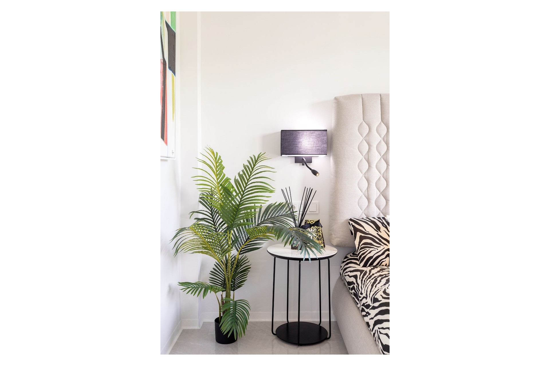 Trädgården, utformad i medelhavsstil, inkluderar en palmera, konstgräs, belysning och ett automatiskt bevattningssystem. För extra bekvämlighet har fastigheten en hydraulisk hiss.